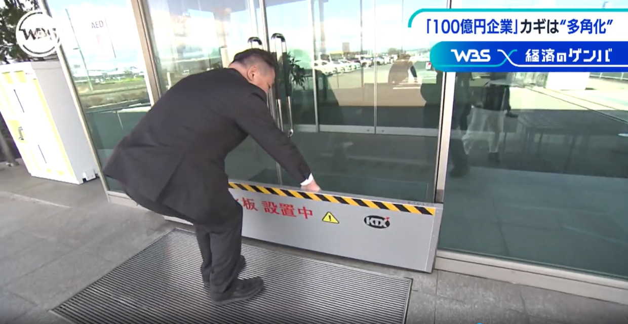 放送では、当社の防災・減災関連製品として「止水板」「デジタルサイネージ」が取り上げられています。